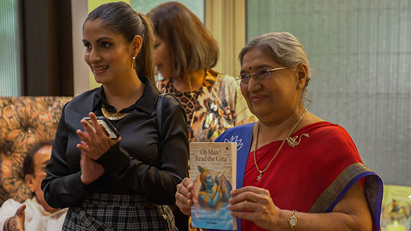 Hansaji loved the title and simplicity of the book Oh Man! Read The Gita. She complimented the compilers on doing a great service by bringing the message of the Gita in a simple to read manner. In her 30-minute talk she highlighted the core aspects of the Gita and enthralled the audience with her fluency, clarity and powerful oratory. Her key message was that the Gita is a guide for daily life and has powerful teachings for one and all.